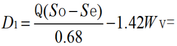 | D3=2.6×Q×Nt= | 33.76 | kg/díaíaíaíaíaíaíaía | Según la condición establecida X₀= | 250 | mg/L | xr= | 10000 | mg/L | ||